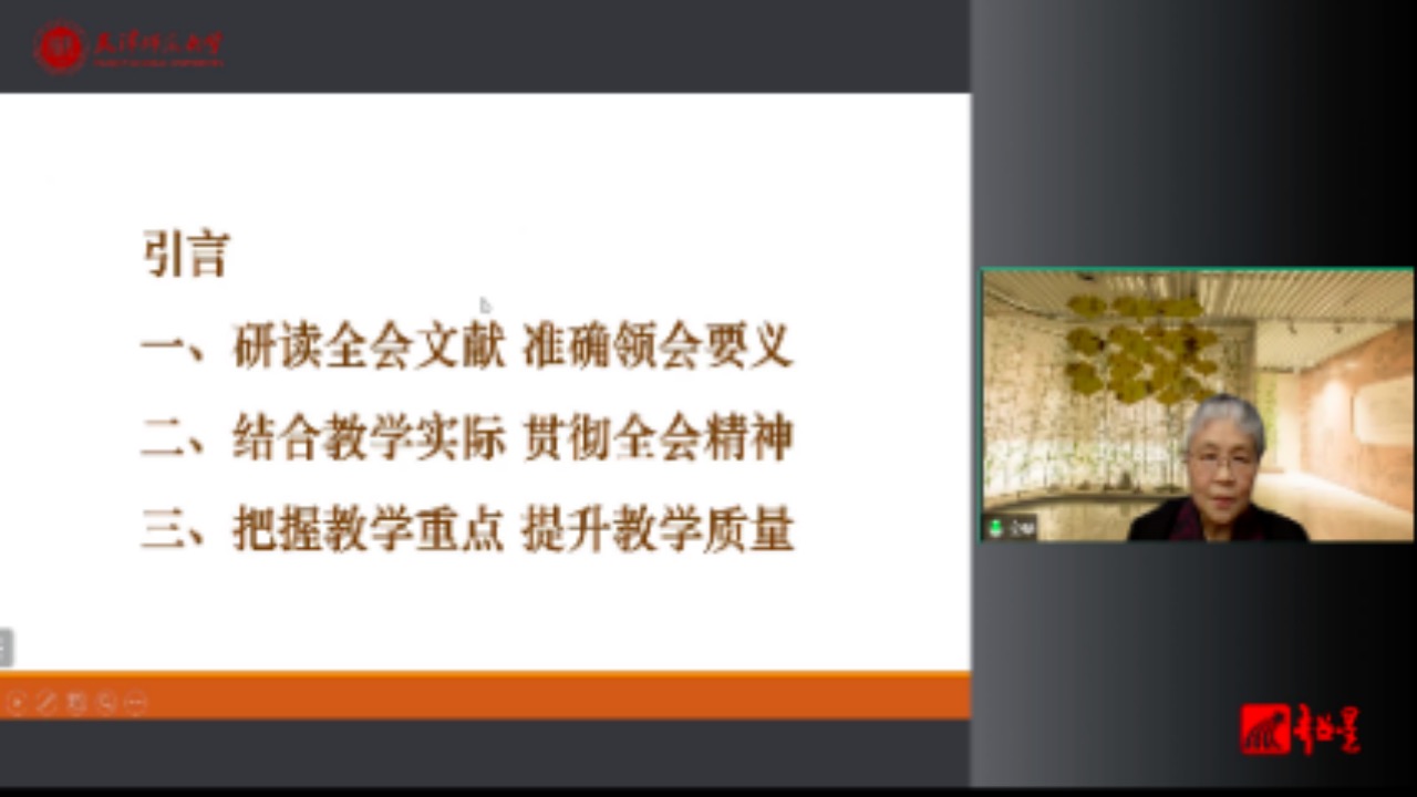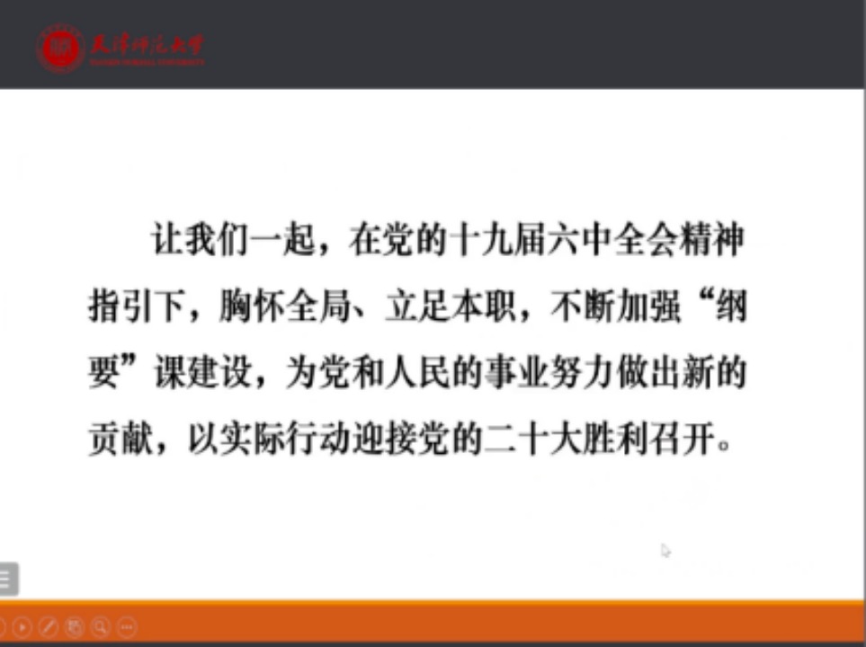 为深入学习贯彻党的十九届六中全会精神,推动十九届六中全会精神有机融入“纲要”课,进一步提升“纲要”课课程教学质量及教学水平,2022年2月27日下午,我校马克思主义学院德法与纲要教研室教师参加线上第36期“中国近现代史纲要”课名师讲堂暨第二次集体备课会。本次活动邀请了北京大学马克思主义学院教授、博士生导师仝华做专题报告。