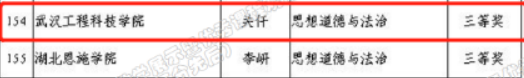 据了解,为深入学习贯彻习近平总书记在学校思政课教师座谈会上重要讲话精神,贯彻落实中共中央、国务院办公厅《关于深化新时代学校思想政治课课改革创新的若干意见》,湖北省教育厅从今年7月份起开展湖北省高校思政课教学展示暨优秀课程观摩活动,该活动采取参赛选手提交教案、课件和说课视频,大赛承办单位邀请相关专家作为评委,对各高校选送的作品进行打分。经专家评委评选,历时5个月,共评出特等奖14名、一等奖42名、二等奖67名,三等奖93名。