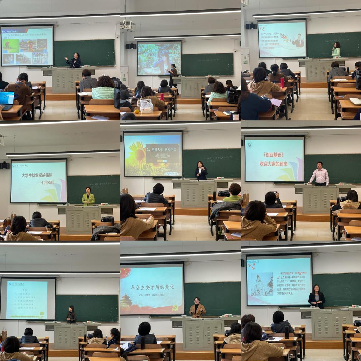 为推动我校“教学质量月”系列活动有效开展,优化思政课课堂教学,马院组织教师分别于11月22日和11月24日走进刘郦教授和赵继伟教授名师示范课堂。在教学示范课中,两位教授一方面以生动活泼的语言,深入浅出地向同学们讲授了思政知识。另一方面,通过教学互动和案例分析的方式,积极引导同学们参与课堂中去,保证了同学们既是身体“进入”课堂,也是心灵“浸入”课堂,切实提高了教学质量和教学效果。此次示范课中的教学经验和技巧,对于提高马院教师思政教学水平,提升思政教学质量,打磨优质课堂,具有很大的启发性。