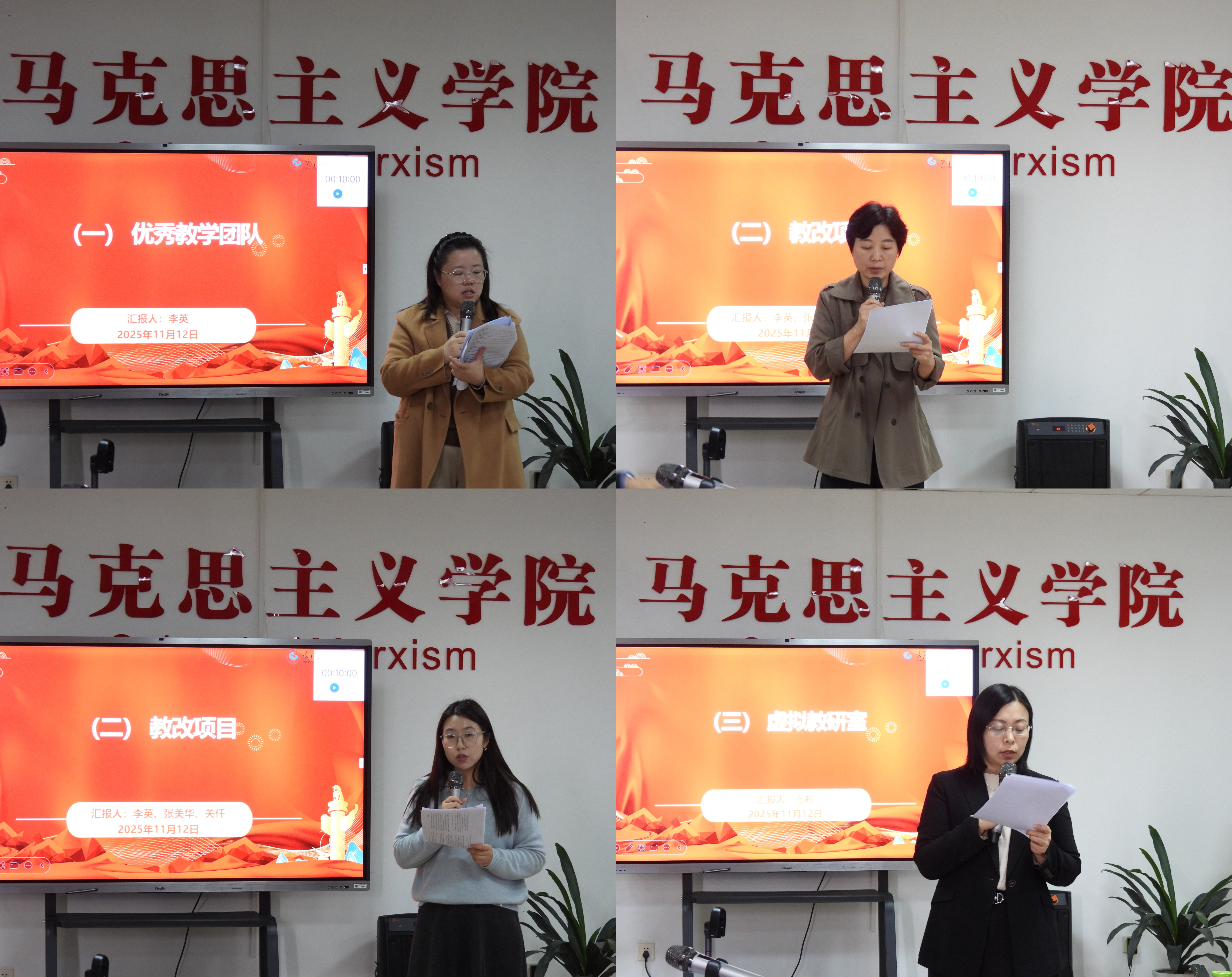 接下来,中期检查项目汇报聚焦优秀教学团队、教改项目、虚拟教研室三类重点项目。李英就优秀教学团队建设与教改项目推进情况作汇报,清晰呈现团队教学创新与项目研究的阶段性成果;张美华、关仟围绕教改项目的实施路径、数字化资源建设、现存问题及优化方向展开详细说明;高莉聚焦虚拟教研室的学科交叉、资源整合、协同教研模式等内容深入汇报,为后续深化建设提供清晰思路。各位汇报人均对照申报书与任务书,从建设落地、进展成效、经费使用等方面进行全面自查阐述。