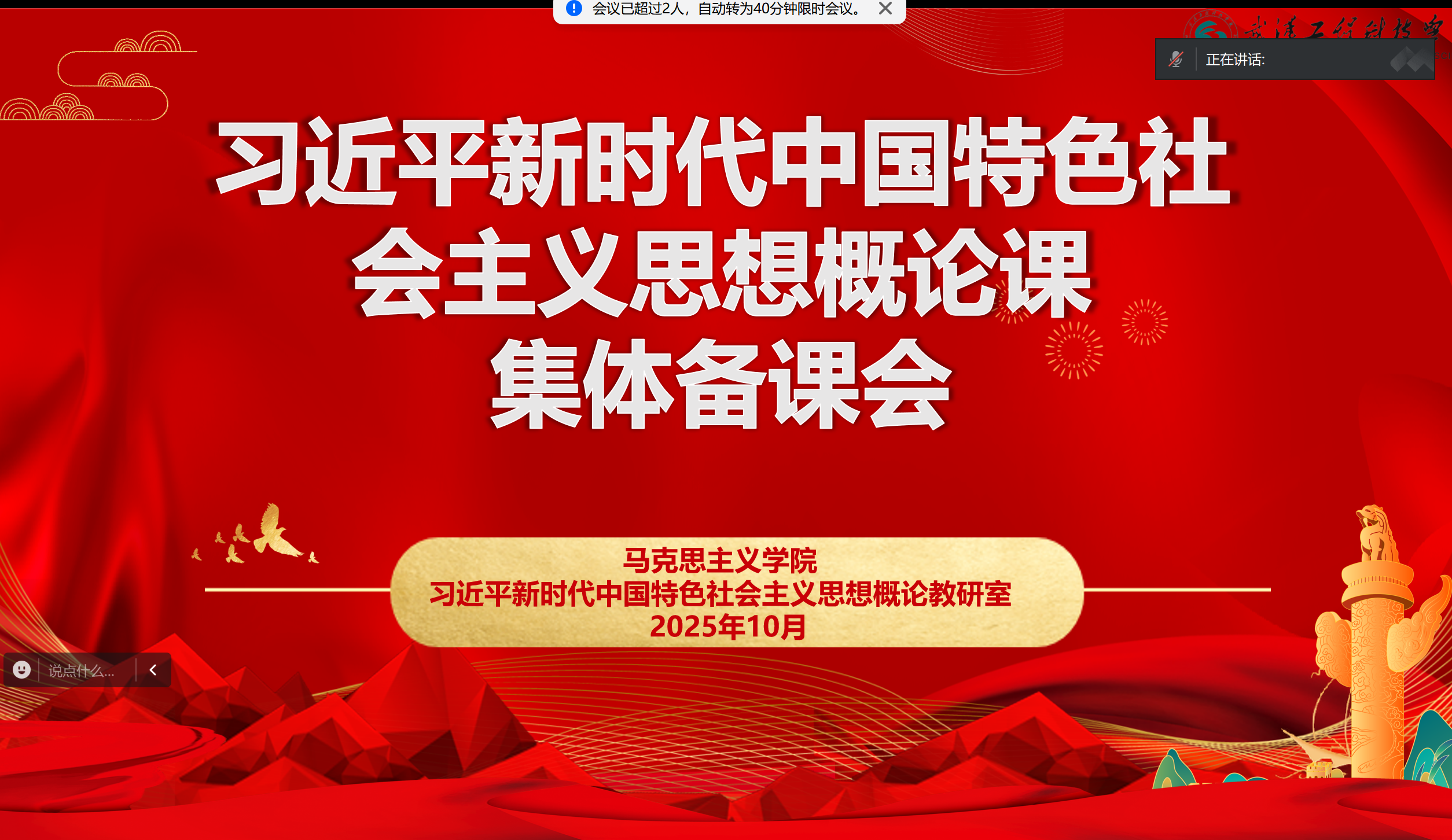 习近平新时代中国特色社会主义思想概论教研室通过腾讯会议开展了一场以“运用雨课堂赋能新思想教学及考核”为主题的集体备课会。