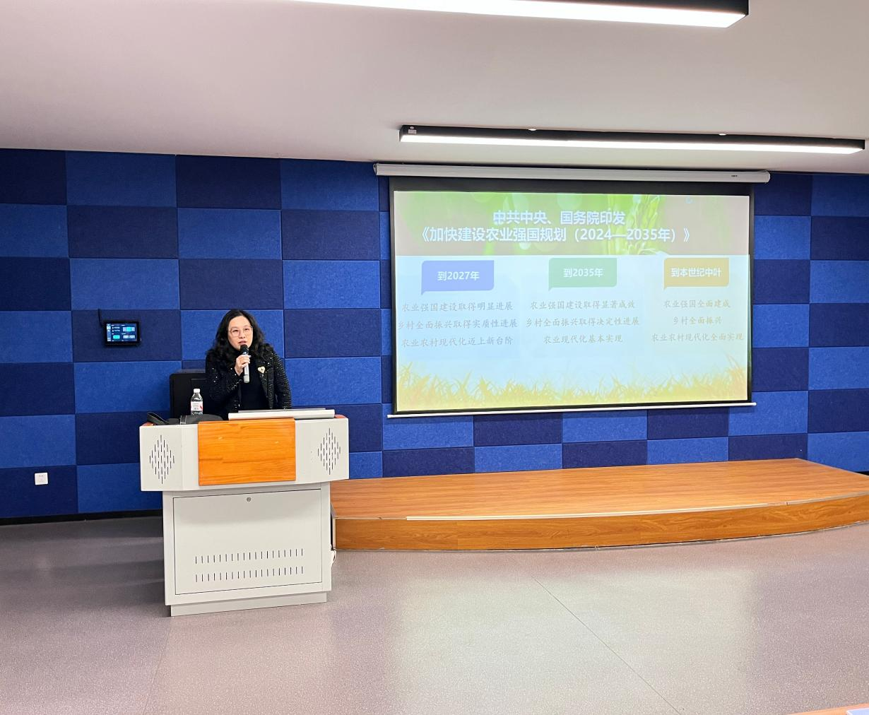 学校党委常委、校长助理胡晶晶在一教215教室为25级学生讲授了一堂以“阔步迈向农业强国”为主题的形势与政策课。