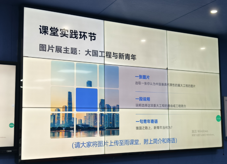 课程创新设置“大国工程与新青年”云端策展环节,全体学生通过雨课堂平台即时上传作品并展开云端互评。方子豪同学选取“中国高铁”组图,寄语“强国之路上,新青年应如高速飞驰的高铁,保持奋进姿态,以高效行动力和创新创造力,驶向梦想彼岸”;张芷悦同学聚焦“港珠澳大桥”,写下“强国路上,新青年当如港珠澳大桥的建设者们,勇挑重担、敢于创新,以坚韧不拔的毅力和开拓进取的精神,跨越重重困难,为国家建设添砖加瓦”。