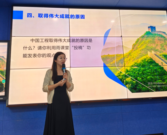 (通讯员 雷智)4月9日,马克思主义学院思政金课《工程中国》第一讲在1教102教室正式开讲。作为贯通历史与现实、融合理论与实践的新形态思政课程,首讲以“从大国工程看中华民族伟大复兴”为主题,通过“追问式教学”贯通历史纵深,依托“雨课堂”打造沉浸式实践平台,带领青年学子在工程史诗中感悟思想伟力,在云端策展中厚植家国情怀。