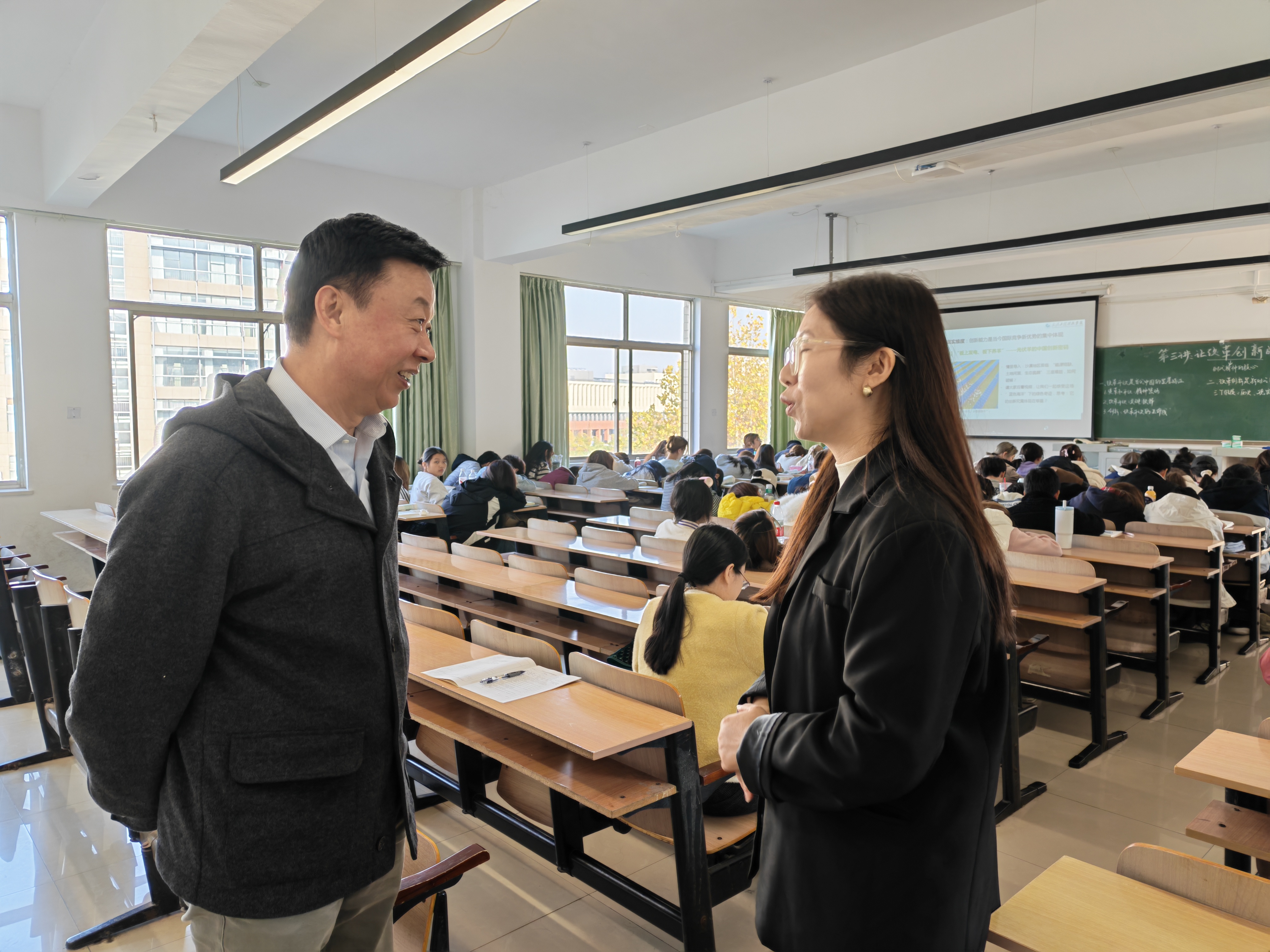 活动第一环节为专家现场听课评课。杨晓慧教授在教1-404教室听取了我校马克思主义学院关仟副教授主讲的“思想道德与法治”课。关老师围绕课程重点,结合案例教学与学生互动,课堂氛围活跃,教学效果显著。听课结束后,杨晓慧教授与授课教师进行了深入交流,结合课程内容、教学方法与育人实效进行针对性指导,既肯定课程教学中的亮点特色,也指出可优化提升之处,为一线思政课教学精准赋能。
