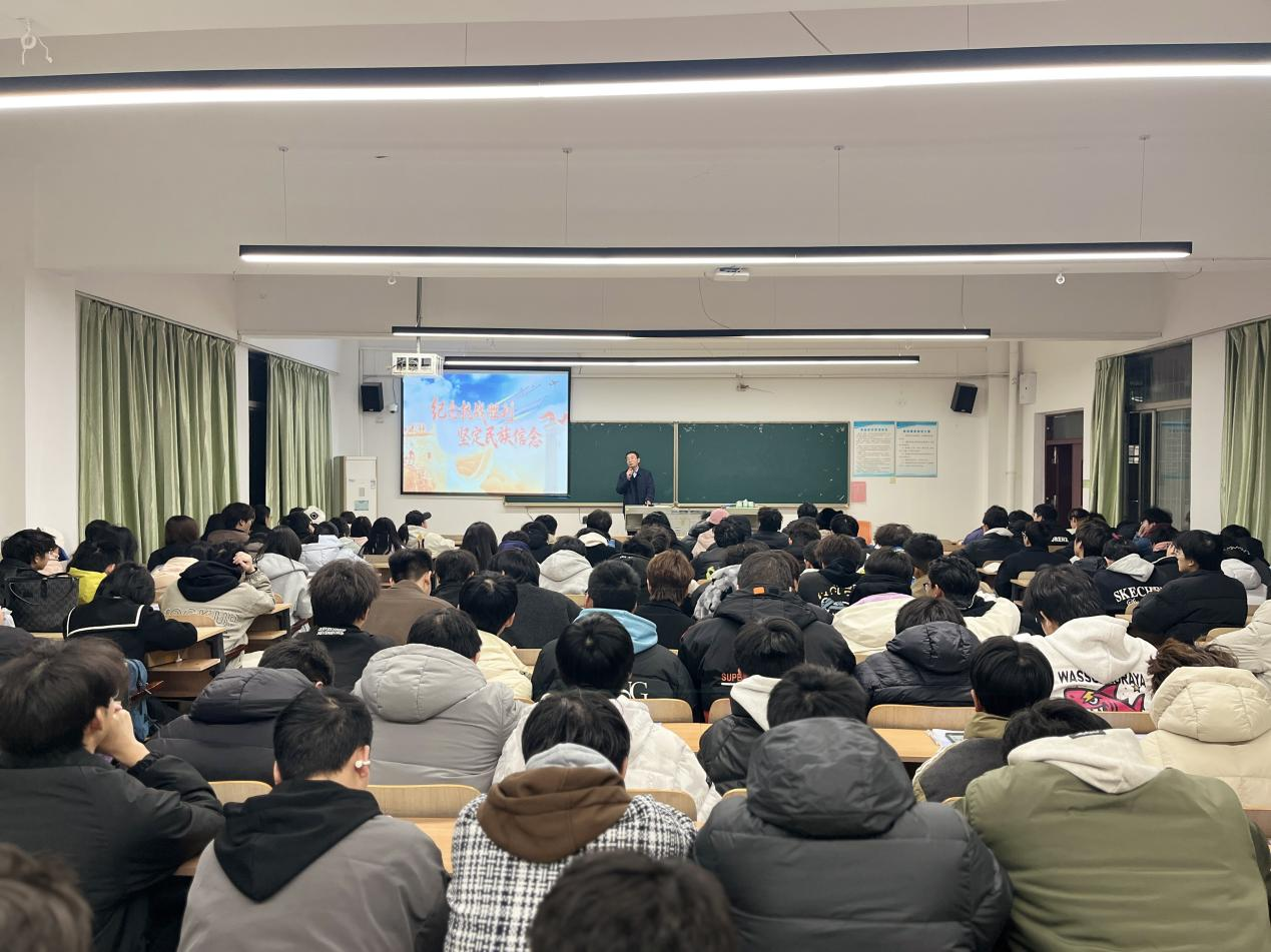 (通讯员 刘晶婷)12月22日晚6:00,校党委副书记、校长助理唐军国以“纪念抗战胜利 坚定民族信念”为主题,为25级部分同学带来了一堂深刻的形势与政策课。