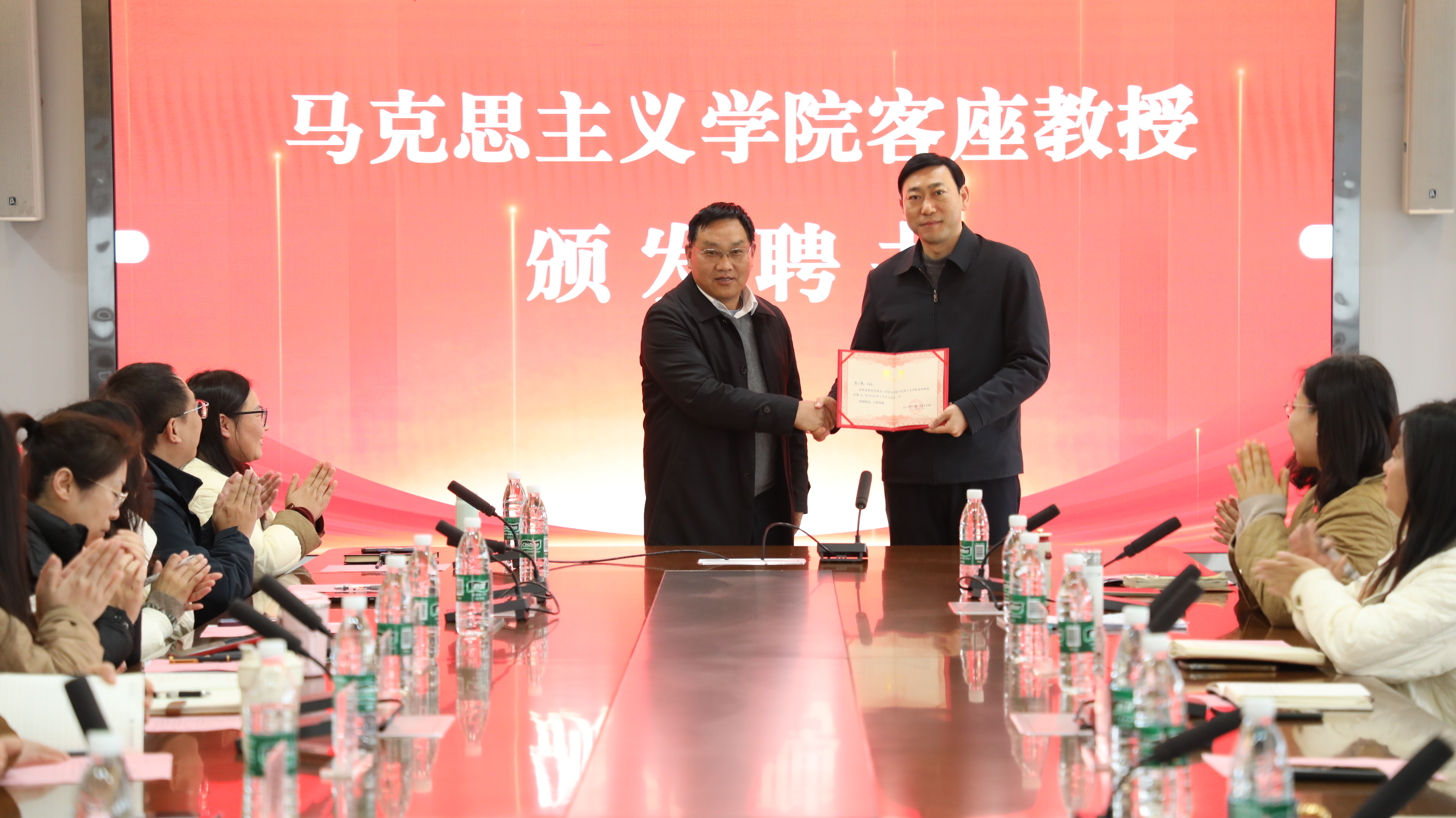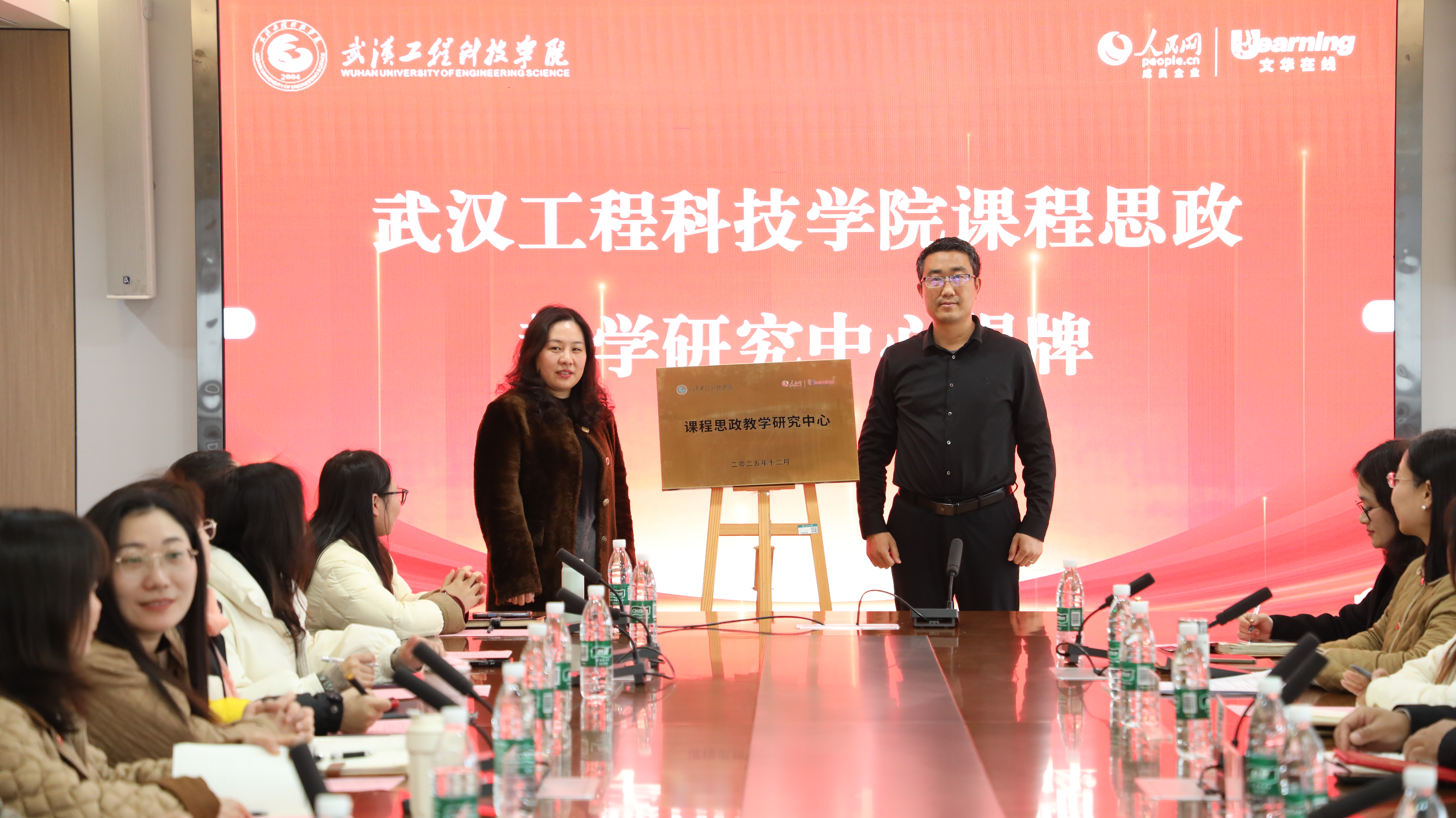 开幕式上,还举行了武汉工程科技学院课程思政教学研究中心揭牌仪式。胡晶晶与人民网文华在线华中区域总经理秦修钰共同为研究中心揭牌。该中心的成立,将为学校深入推进课程思政建设提供有力的平台支撑,助力构建“大思政”育人新格局。随后,武汉工程科技学院特聘中国地质大学马克思主义学院院长、教授、博士生导师阮一帆为马克思主义学院客座教授,马克思主义学院院长阎占定为阮一帆教授颁发聘书。