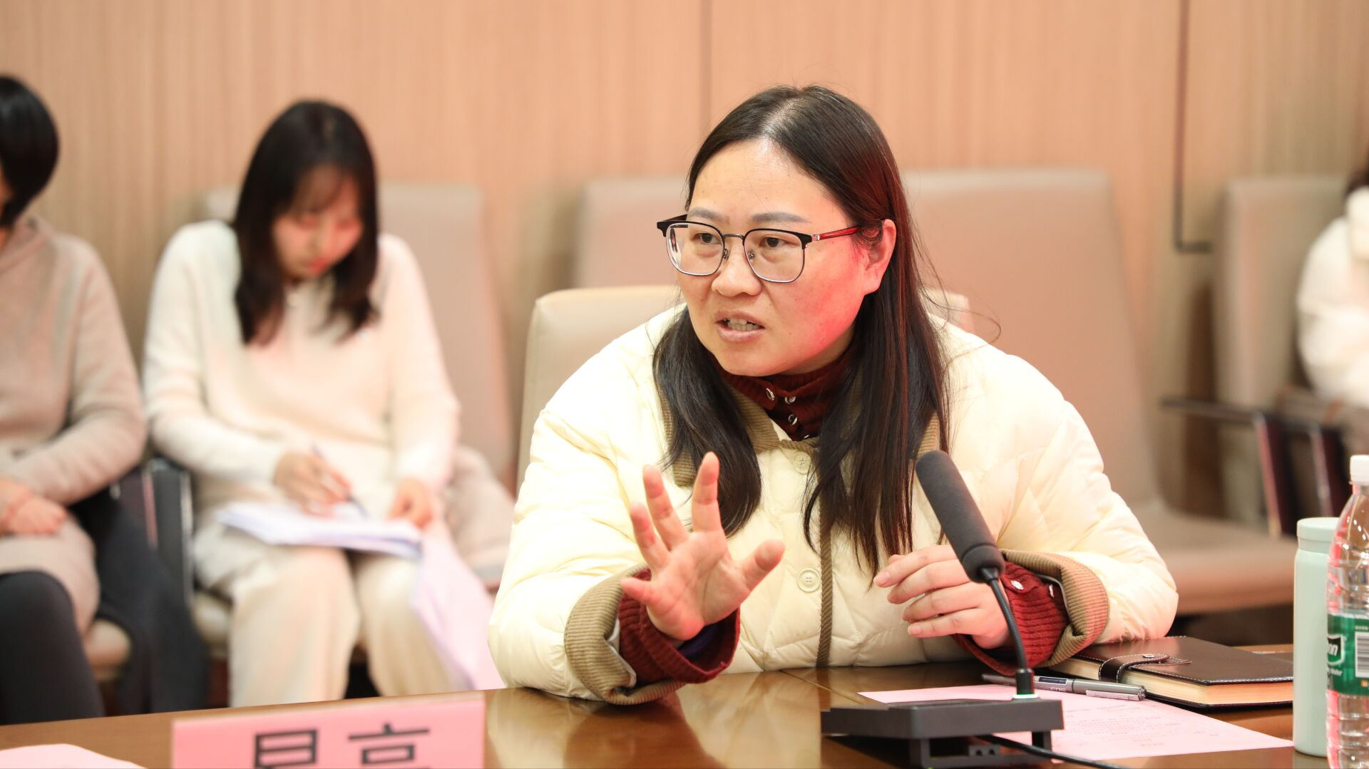 在会议交流环节,由武汉工程科技学院校长助理胡晶晶主持。参会的三位代表围绕专家报告和“思政课与课程思政同向协同发展”的问题同专家面对面交流。