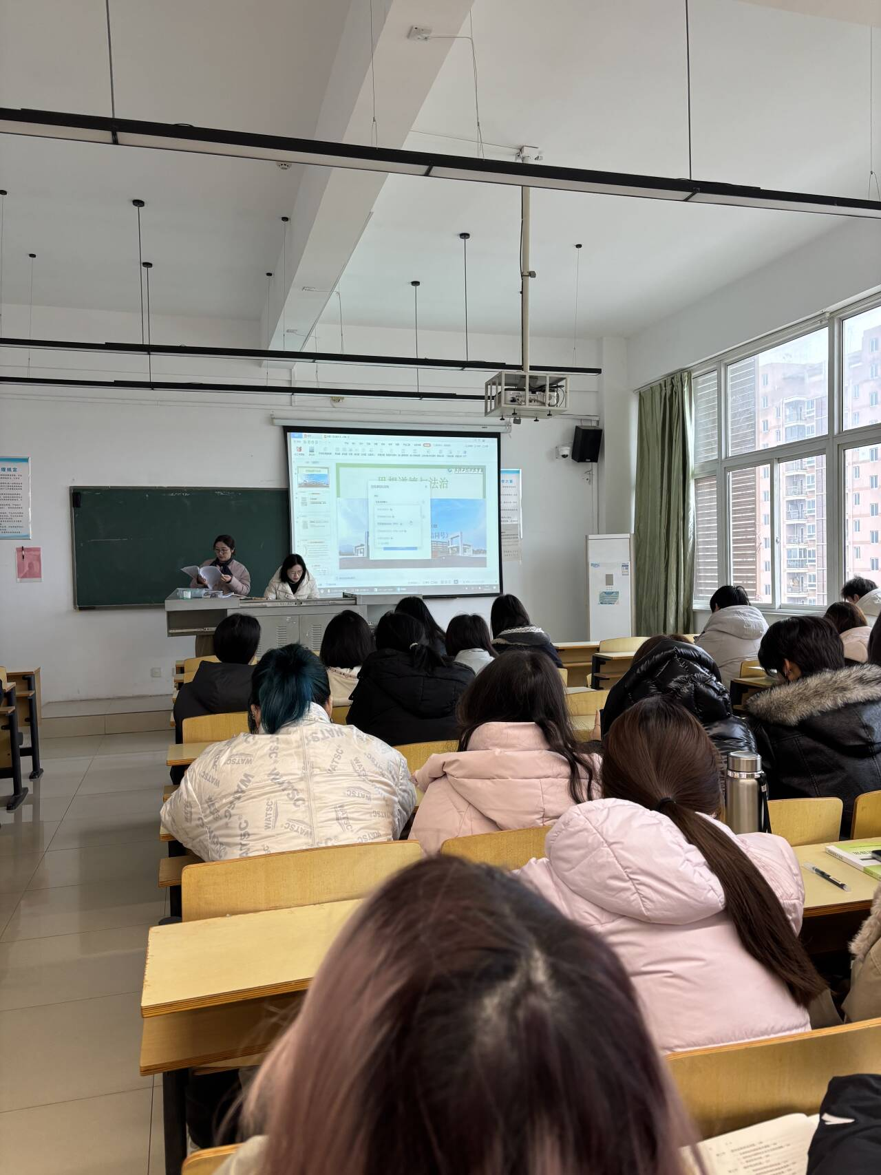 检查小组直奔课堂,重点围绕四大维度展开细致核查:一是教师教学状态,看授课是否激情饱满、逻辑清晰,教学大纲、教案等文件是否规范齐全,是否落实“六要”“七带”要求;二是课堂管理实效,观察学生到课率、抬头率及课堂秩序;三是学生参与度,关注师生围绕教学主题的互动情况;四是教学设备运行,确保硬件设施流畅、教学环境有保障。从检查结果来看,新学期思政课堂开局态势良好:教师授课状态佳、教学文件完备,学生听课专注、互动积极,教室设备运行流畅,充分展现出马院师生昂扬向上、奋楫争先的崭新风貌。