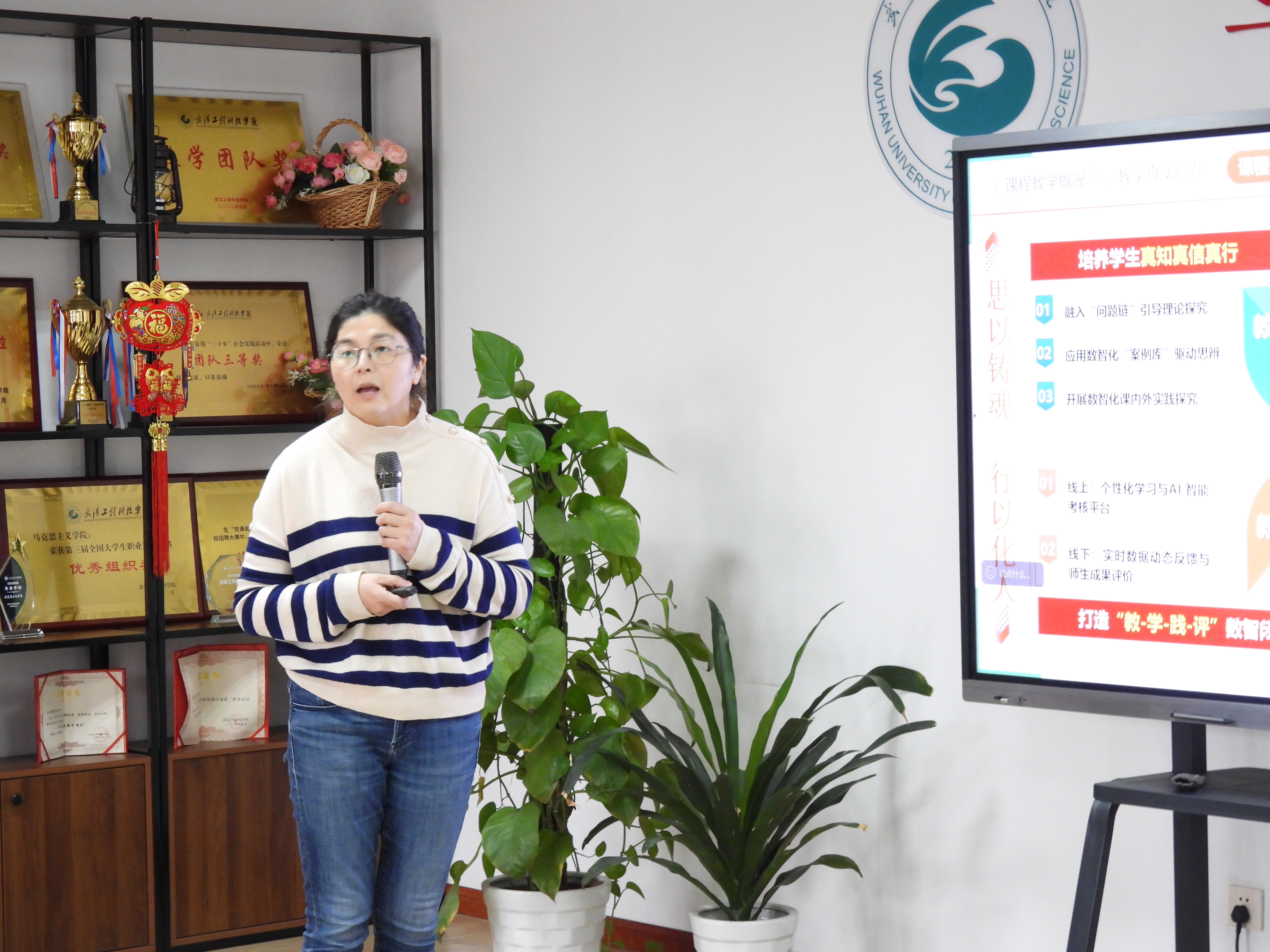 名师示范课环节,马克思主义学院教授王沛沛以“数智化转型背景下《思想道德与法治》课程教学创新实践”为主题作示范课分享。她从课程教学概论、教学实际问题、设计理念、资源建设、教学方法及教学成效六大维度,系统阐释课程改革的实践路径与创新经验,分享的内容兼具实用性与可操作性,为思政课教学创新提供了优质实践范例,充分发挥了名师的示范引领与辐射带动作用。