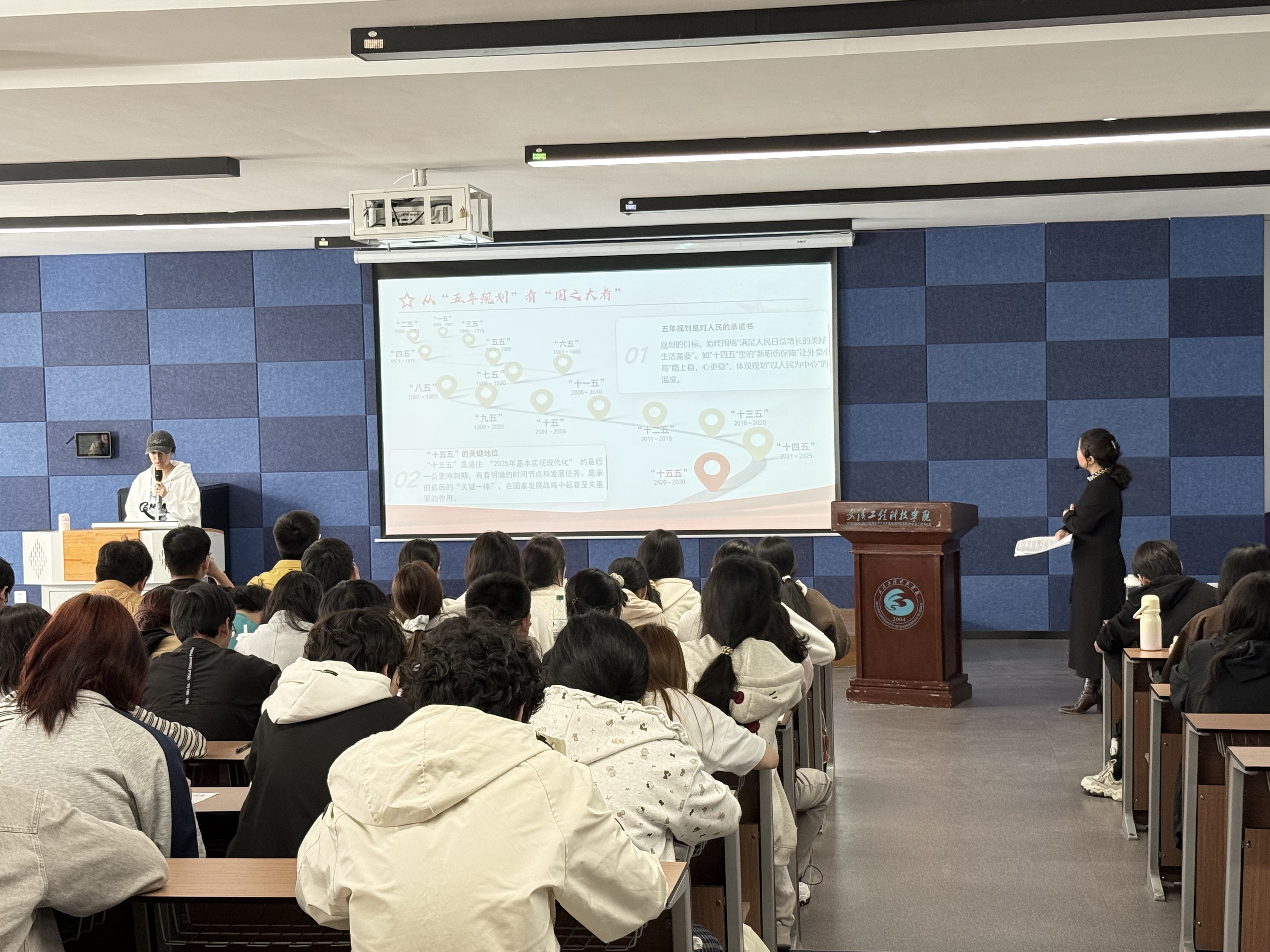 课程中,同学们以小组为单位,围绕一以贯之绘蓝图、“十五五”时期的历史方位与时代重任、“十五五”规划的战略部署与宏伟蓝图、文化赓续强底气、新征程与青年担当等主题,依次进行分享汇报。汇报结束后,张书记紧扣主题,进行点评总结与深度讲解。她指出党的二十届四中全会审议通过的《中共中央关于制定国民经济和社会发展第十五个五年规划的建议》,全面总结了“十四五”时期我国发展重大成就,深刻阐明了“十五五”时期在基本实现社会主义现代化进程中的重要地位,深入分析了我国发展环境面临的深刻复杂变化,明确了“十五五”时期经济社会发展的指导思想、基本原则与主要目标,为未来国家发展擘画了宏伟蓝图。最后,张书记教育引导学生们,要抓好时代发展机遇,要扎实学好专业知识,笃行实干、奋勇争先,为推进中国式现代化贡献青春力量。